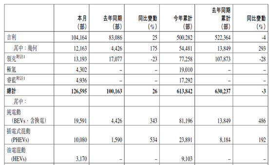 图:吉利汽车6月销量公报 来源:港交所