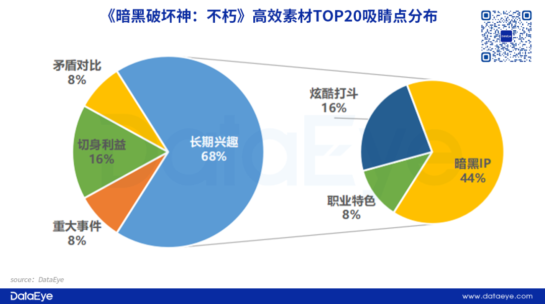《暗黑破坏神:不朽》效果广告力度中等偏高,但品牌向动作暂时较少,原因却更为特别。1是因为近一个月《暗黑破坏神:不朽》被报道、被讨论声量已足够,已经勾起大量受众好奇心;2或许是为了维持热度更为了稳健,之后再持续有节奏推进。