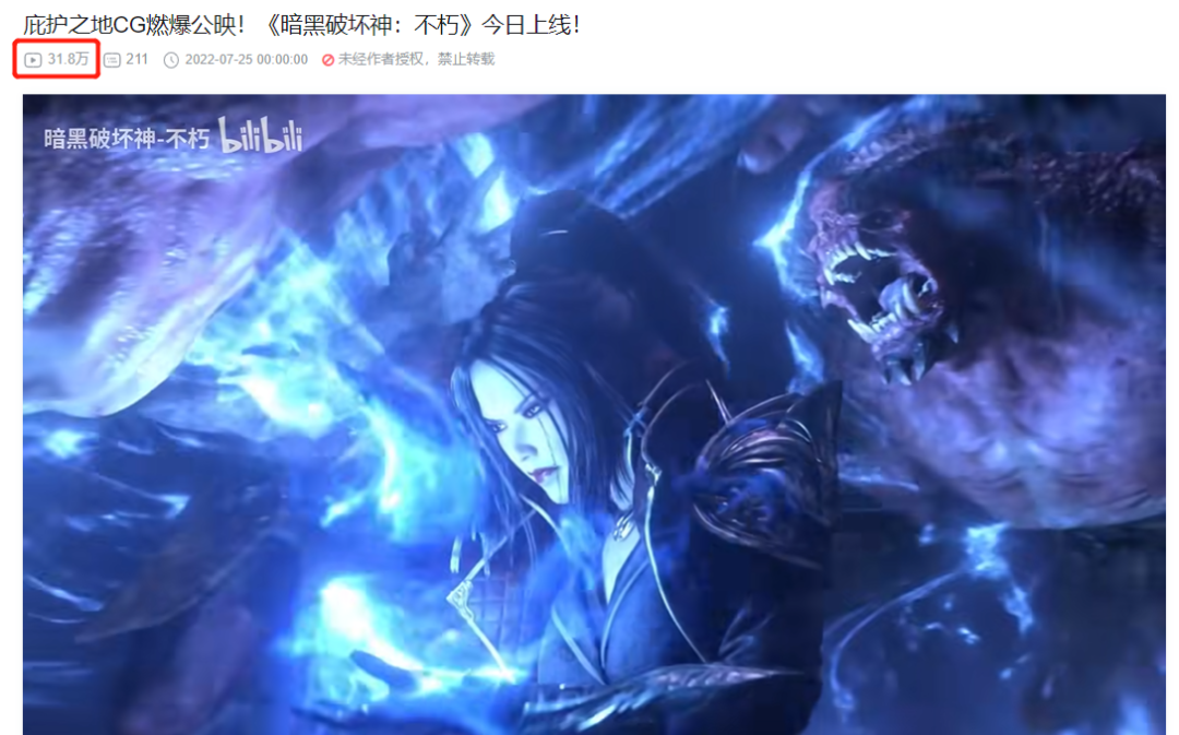 《暗黑破坏神:不朽》于25日上线当天凌晨,在B站官方频道发布了一则时长约为1分26秒的游戏CG,内容围绕游戏内容展开,并且对游戏职业做对应的介绍。截至25日下午,该条CG视频渠道超过30万次播放。