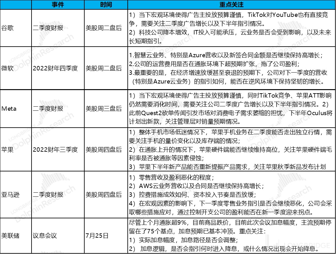 以下,海豚君总结海豚君对五大巨头财报和加息会议的重点关注点: