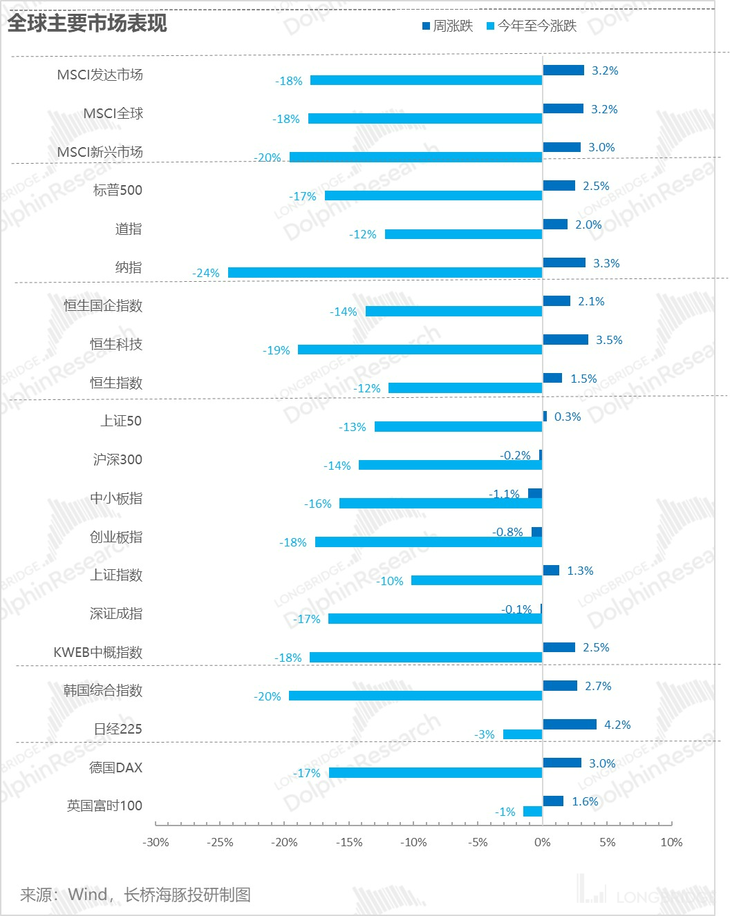 上周加息预期并没有因为通胀飙高而再次上升,依然停留在了之前预期得 75 个基点。在加息预期趋缓得情况下,除了 A 股因为疫情反扑持续回调之外,全球市场都在修复当中。