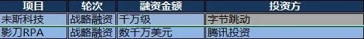 相较于去年企管软件的战略投资,今年上半年我们能看到互联网巨头也开始真正通过投资进行RPA的战略布局。字节跳动战略投资了未斯科技,腾讯则战略投资了影刀。