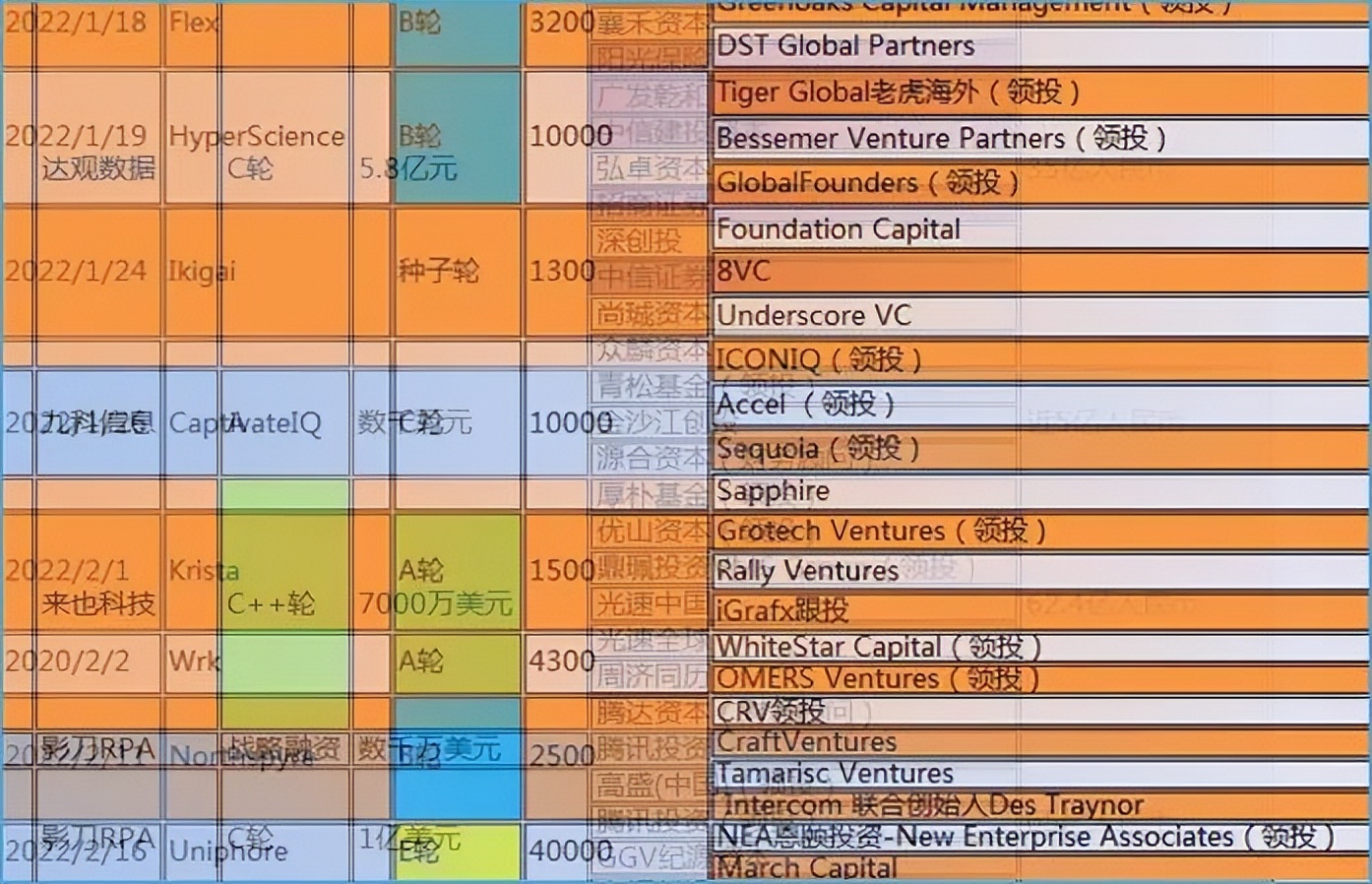 在投资机构名单中,我们看到老虎基金、红杉资本和光线资本是投资RPA的常客。同时,传统IT厂商戴尔资本也已入局,由此也能够见到RPA在制造业的影响力。
