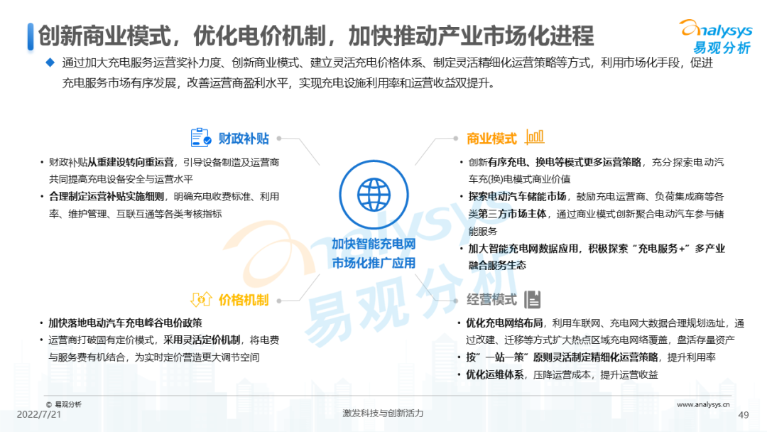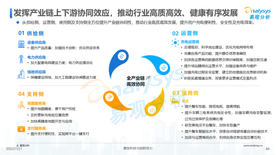 针对中国电动汽车公共充电服务行业的发展,本报告提出四条建议: