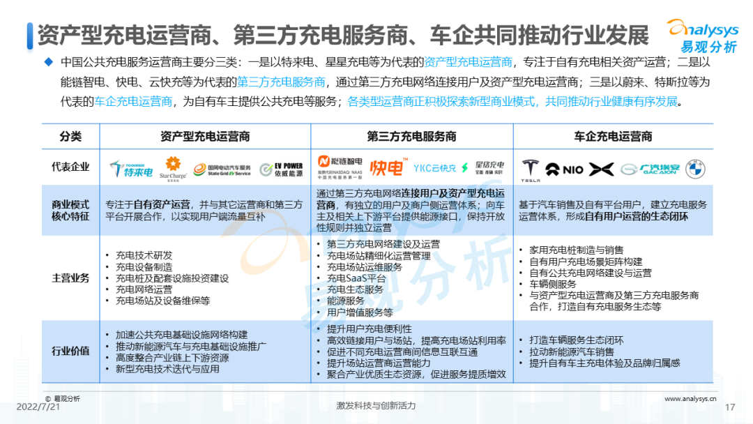 目前,中国电动汽车公共充电服务运营商主要分三类: