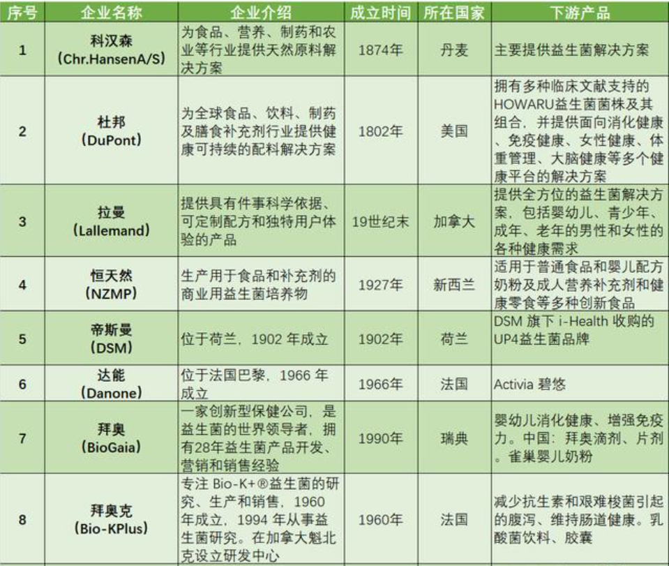 目前,国际益生菌专利基本上被美国、日本、俄罗斯等国家垄断,国内益生菌原料也必须从这些国家进口。天风证券研报显示,2020年国内益生菌原料主要来源于美国公司杜邦和丹麦公司科汉森,两家公司供应的原料占国内整体市场的85%。