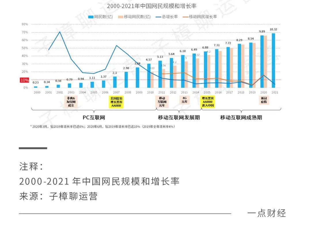 从中国网民规模的变化可以看到,即便是PC时代网民的巅峰数量,也远低于移动互联时代。