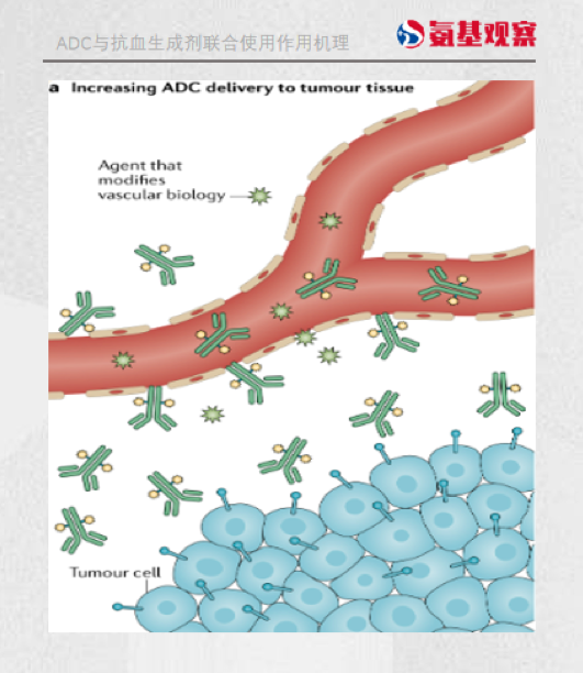 抗血管生成药物能够使肿瘤血管正常化,从而改善ADC向肿瘤组织的递送,增强ADC的细胞毒性作用。