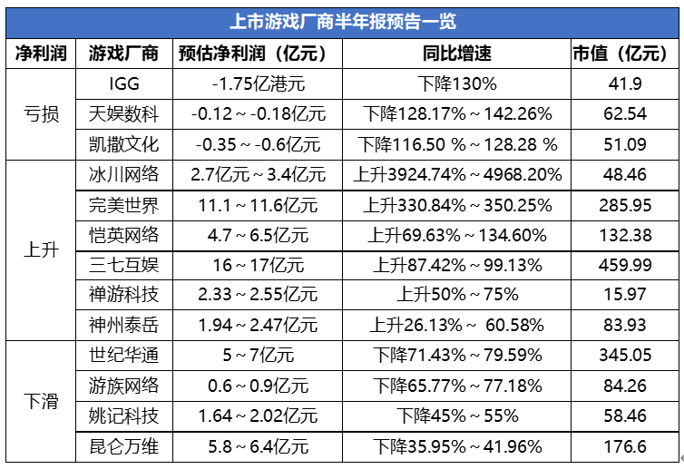 截至目前,三七互娱、完美世界、世纪华通、IGG、昆仑万维、禅游科技等13家游戏上市公司陆续发布了中期业绩预告。