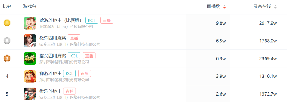 值得关注的是,今年以来,途游、家乡互动等棋牌公司也加入了直播行列,棋牌游戏直播的“蛋糕”争夺愈发激烈。
