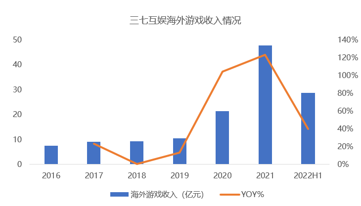 业绩预告显示,三七上半年海外收入预计同比增长超40%(21H1:三七海外收入约20.45亿元),粗略估算三七上半年海外收入超28.6亿元,已经达到21年全年的6成以上。