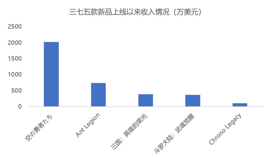 海外新品整体表现较好,但自研产品表现一般。三七旗下五款新游上线以来累计收入超3639万美元(约2.46亿元)。其中,代理产品《空の勇者たち》和《Ant Legion》收入较高,三七首款自研SLG产品《三国:英雄的荣光》海外累计收入约388万美元,较《三国志·战略版》破亿的月流水存在不小差距。