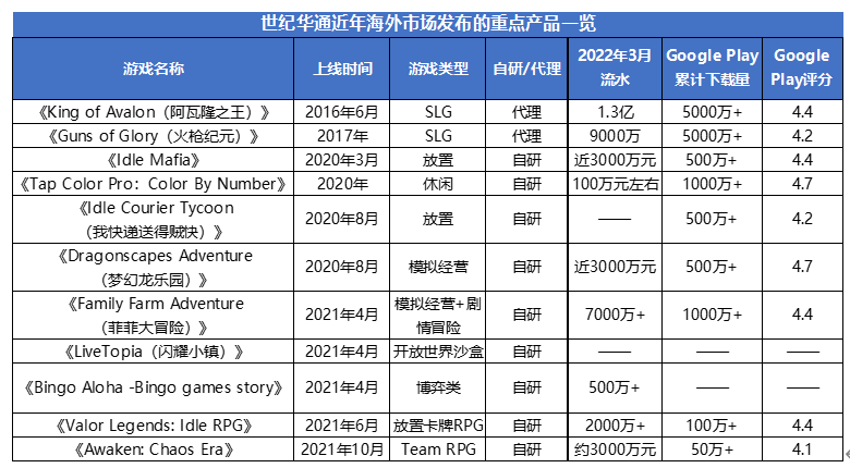 此外,世纪华通海外收入具有不确定性,缺乏长线稳定、高收益的产品,两款爆款SLG产品(火枪纪元、阿瓦隆之王)皆系代理。这也导致世纪华通近年海外游戏收入原地踏步。