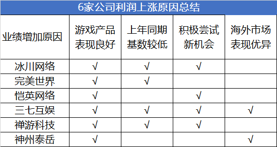 游戏财经汇发现,6家游戏上市公司净利润大幅上升的原因主要有4点。