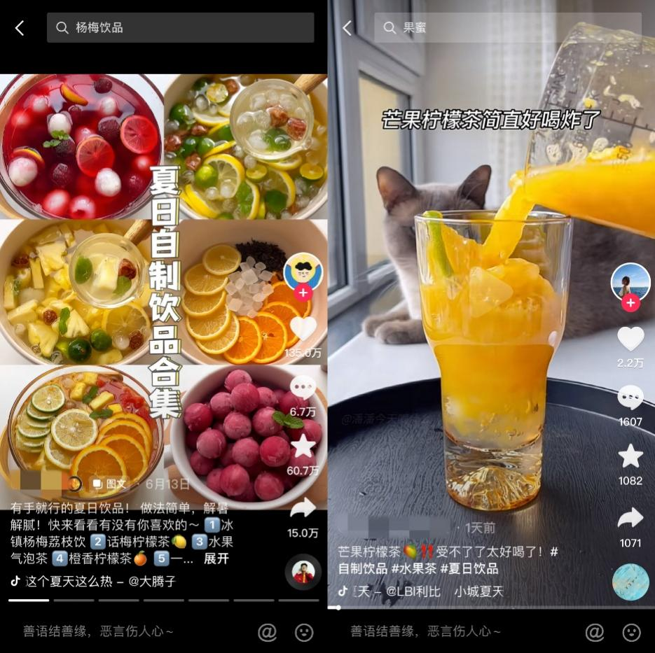 与此同时,由于自制饮品的门槛很低,所以博主之间选题互相抄袭、模仿风格的情况屡见不鲜。买点材料就能上手,加上博主本人往往不用露面,所以粉丝也很难分辨究竟谁才是创意的归属者。