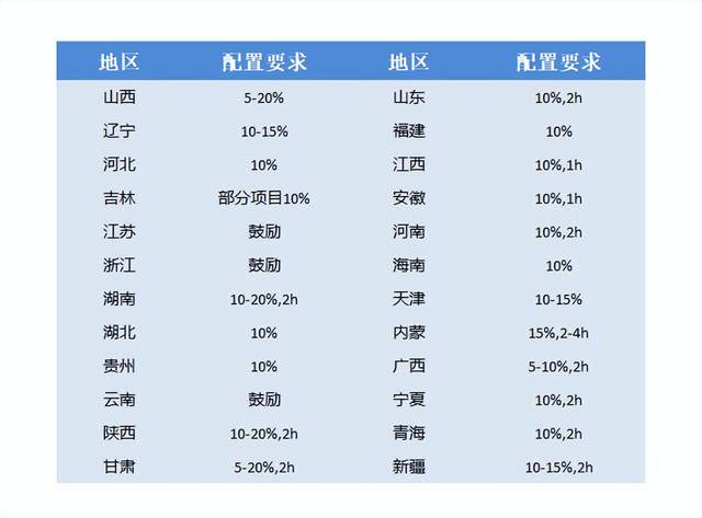 图3:国内各地区配储要求,资料来源:各地方政府网站