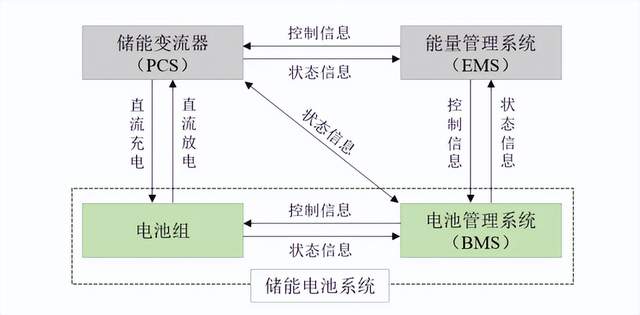 一套完整的电化学储能系统主要由电池组、电池管理系统(BMS)、能量管理系统(EMS)、储能变流器(PCS)以及其他电气设备构成。其中,电池组是储能系统最主要的也是最贵的构成部分;电池管理系统主要负责电池的监测、保护和均衡等;能量管理系统负责数据采集、网络监控和能量调度等;储能变流器可以控制储能电池组的充电和放电过程,进行交直流电的频繁变换。