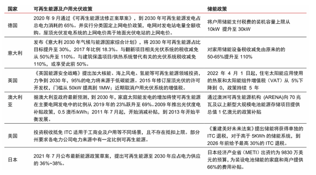 欧美等各国政府均加快了可再生能源转型的步伐,在持续加强光伏产业支持力度的同时通过减税、退税、补贴等一系列政策助力储能发展。在新能源领域,国外的光伏和新能源车产业都已经落后中国一大步了,谁也不愿意再丢掉储能市场。