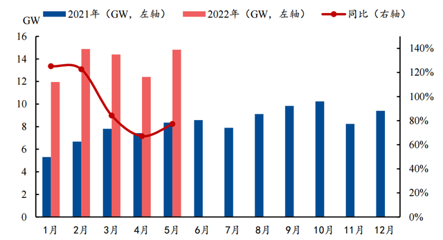 再来看一组数据,根据海关总署统计,今年前5个月全国光伏组件月度出口量,同比上涨达到125%、123%、84%、67%、77%;1-6月逆变器出口31.201亿美元,同比增长47.87%,足见海外市场的景气度。我们可以看到,家用储能龙头的派能科技(SH:688063)最近成了储能板块的热股,公司出货同比大增,正在加班加点生产,据说其订单都排到2023年了,可不是幸福的烦恼。