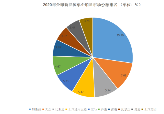销量不佳直接导致宝马新能源汽车的市场占有率偏低,2020年EV Sales数据显示,宝马在全球新能源市场中的占比仅为5.23%,特斯拉、大众、比亚迪和上汽通用五菱分据一至四位。