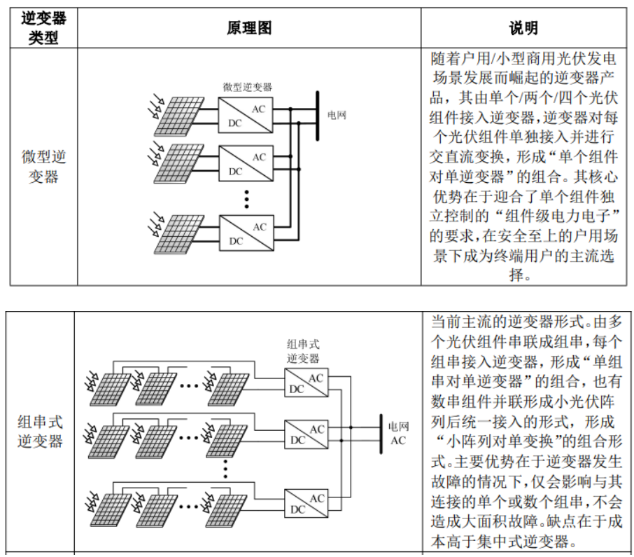 集中式逆变器功率大,成本低,一般只用于大型地面电站;组串式逆变器功率范围广,可适用各类型电站。