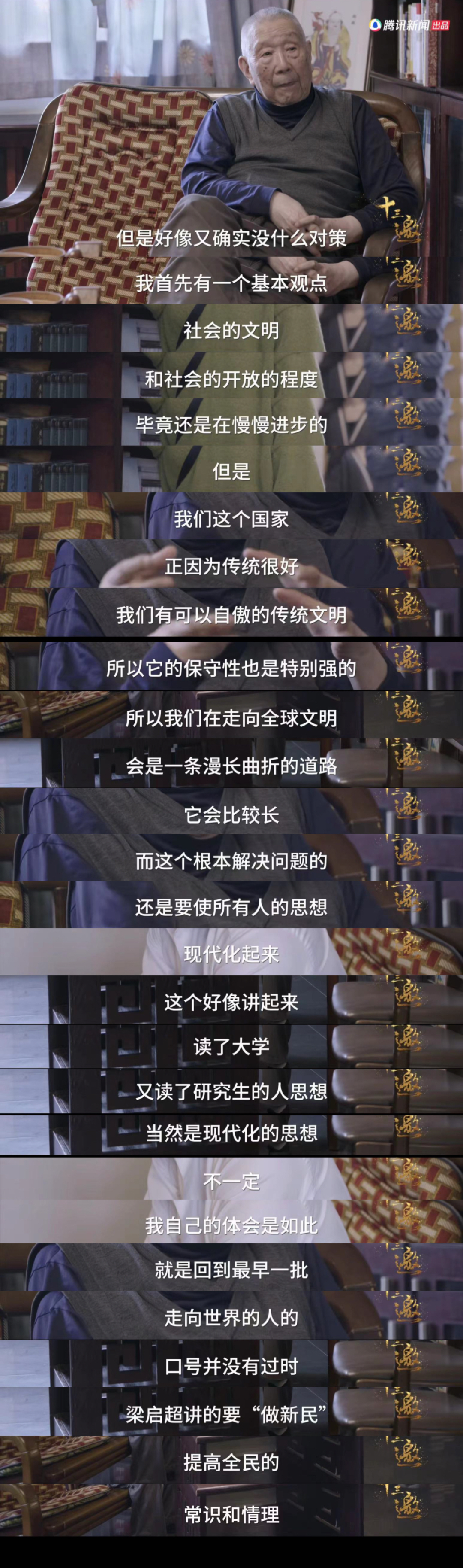 节目中有年轻人问钟叔河,“这两年很多人都有一种无力感,面对一些事或是整个世界的变化,好多事情你觉得不对,但是好像又确实没什么对策”,他是这样回答的,借用一下,与各位共勉与反思: