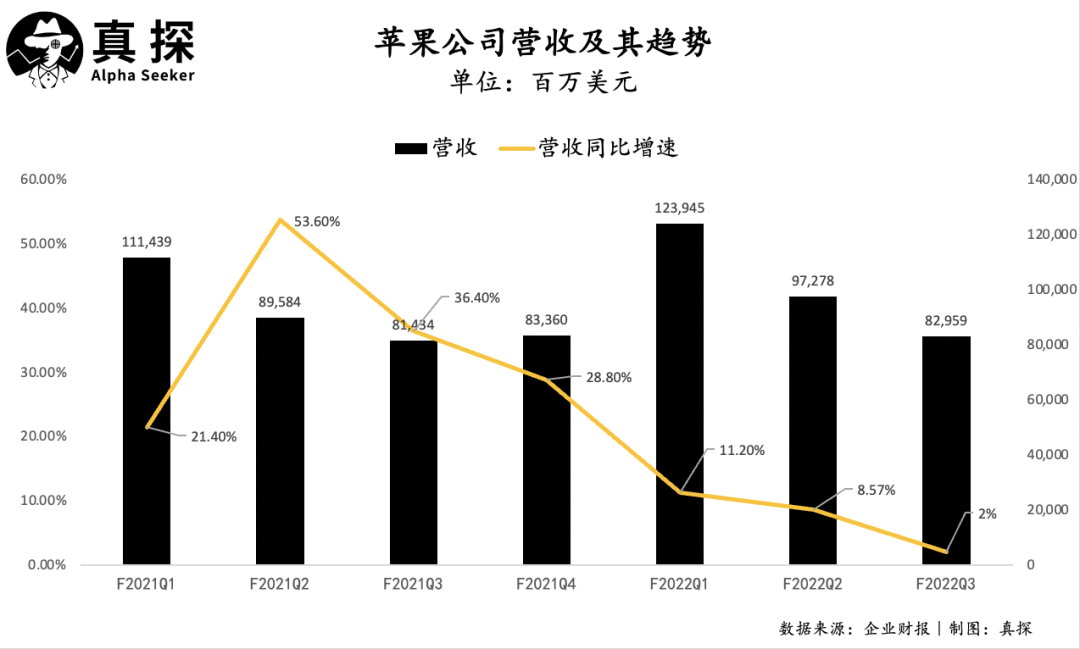 大环境和品牌状况两相对比,苹果在中国的表现已经算是不错。根据财报,2022年第三财季,苹果在大中华区营收为146亿美元,同比下降了1.1%。