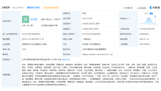早于业务变动的是每日优鲜的工商登记信息的调整。企查查App显示,每日优鲜主体公司为北京每日优鲜电子商务有限公司,成立于2014年10月,注册资本约31.95亿人民币,由Missfresh HK Limited全资持股。变更记录显示,7月18日,该公司法定代表人由联合创始人曾斌变更为孙玉英,同时曾斌与另一位联合创始人徐正已退出主要人员行列。