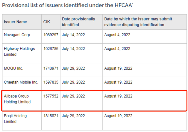 其实,在阿里巴巴披露了2022财年年报时,市场便有声音预测,阿里巴巴很可能将会被SEC列入“预摘牌”名单。