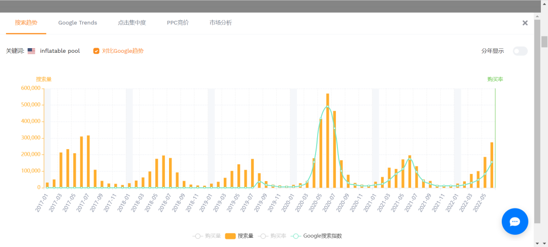 虽然已经有了几十年的历史,销量也一直不错,但充气泳池销量的爆发是在2020年。