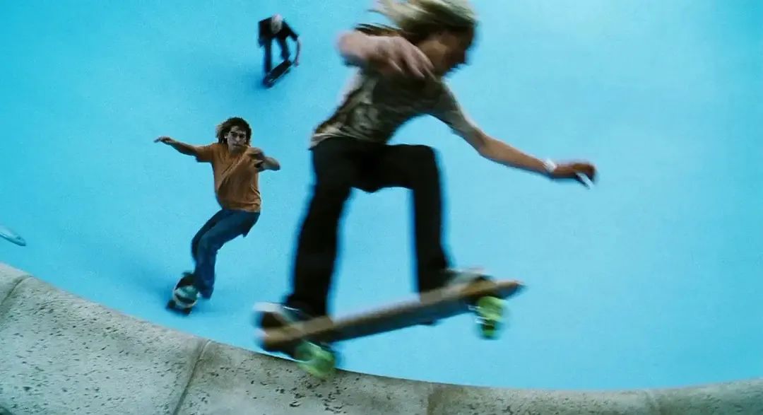 1970年代,被称作“狗镇”的南加州威尼斯,一群“贫民窟”少年闯入私宅,抽干泳池里的水,练习滑板动作。图源 滑板电影《狗镇之主》剧照