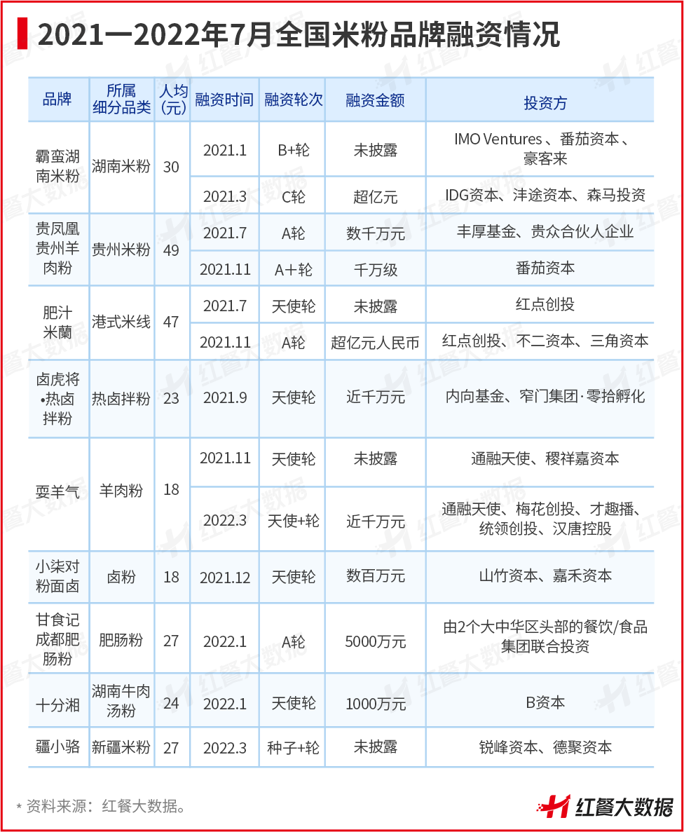 除了新疆炒米粉,观察君发现,近一年来还有不少具有鲜明地方特色的米粉品牌获得资本青睐,在米粉市场逐渐崭露头角。
