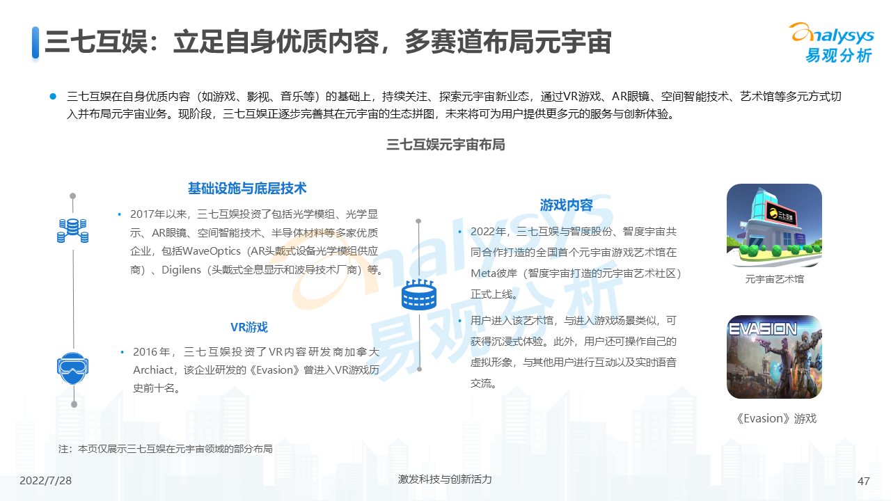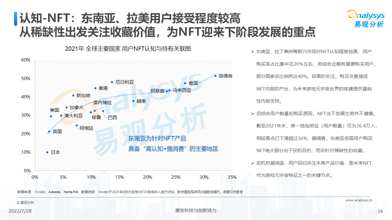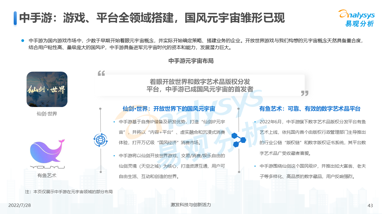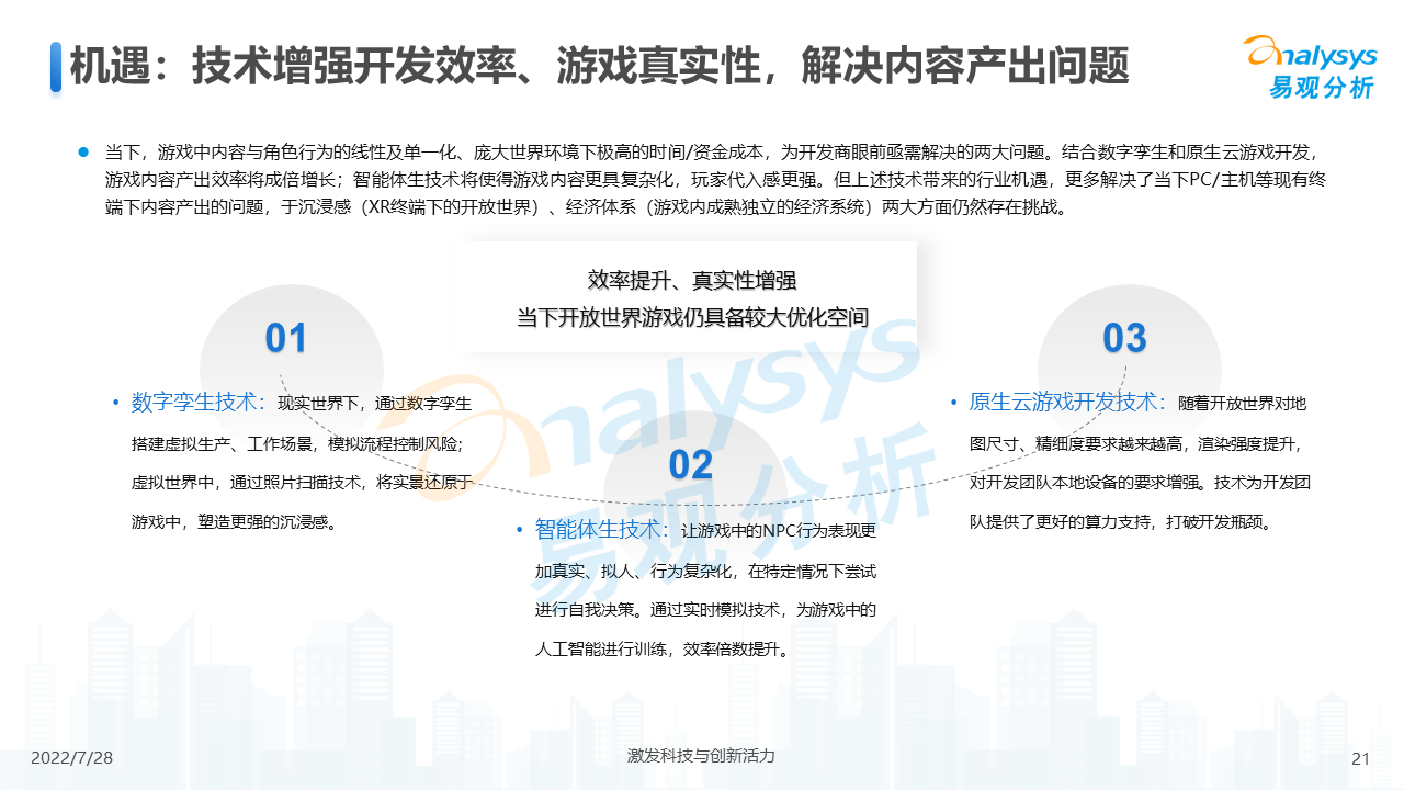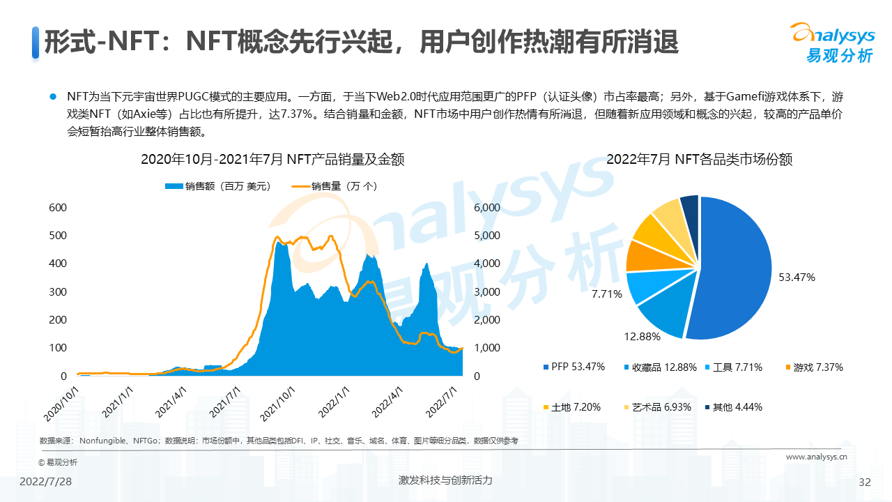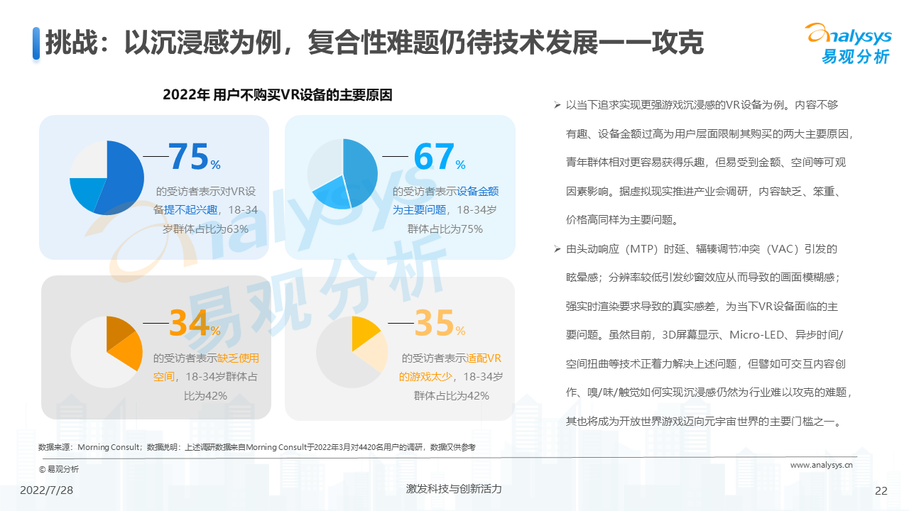 文 | 易观分析随着区块链、XR等领域技术的快速发展,元宇宙也在从概念开始逐步落地,NFT、Gamefi等应用场景涌现。游戏作为天然具备虚拟空间、力求玩家沉浸感的娱乐性产品,与元宇宙概念高度契合,具备较强关注、分析价值。