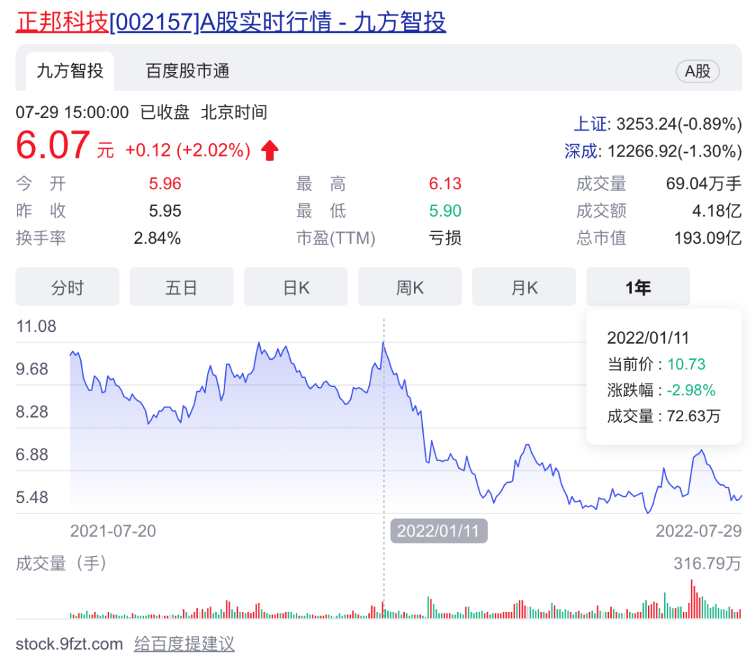 事实上,将时间线拉长,更能看出投资者已经开始用脚投票正邦科技。 2022年1月11日,正邦科技的股价曾触及10.73 元/股的高点,但是随后,其股价就“跌跌不休”,截止2022年7月29日收盘,正邦科技的股价仅为6.07 元/股,教半年前的高点下跌了43.43%,近乎腰斩。
