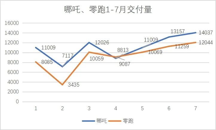 本月哪吒再次以14037辆的成绩排名第一,零跑则以12044辆的成绩排名第二,其余几家也都保持在月交付上万辆的水平,剩下的依次排名为小鹏11524辆、理想10422辆、蔚来10052辆、极氪5022辆。