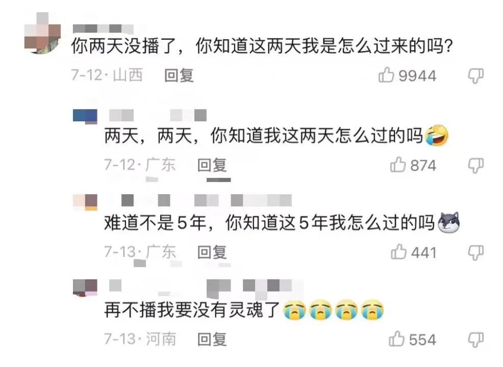 “你两天没播了,你知道这两天我是怎么过的吗?”