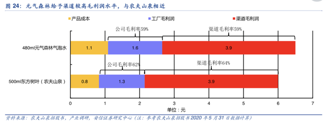 有一个鲜为人知的事实是,杂货店里只卖2元的农夫山泉瓶装水,反而是利润最丰厚的饮品。2元的零售价中有59%是渠道及终端利润,远高于啤酒的29%、白酒的23%和乳品的26%。