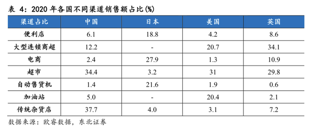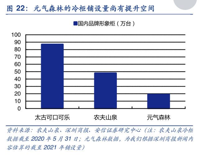 东北证券的一份调研显示,中国饮料市场的主要销售渠道中,以夫妻杂货店为代表的传统渠道销售额占比最高,2020年达到37.7%,而各家的冷柜投放也正是集中在该渠道。