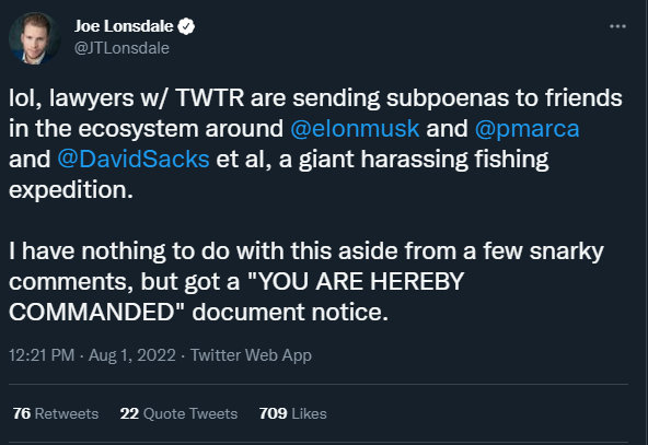 另外 Keith Rabois 和 Joe Lonsdale 等人也收到了传票。