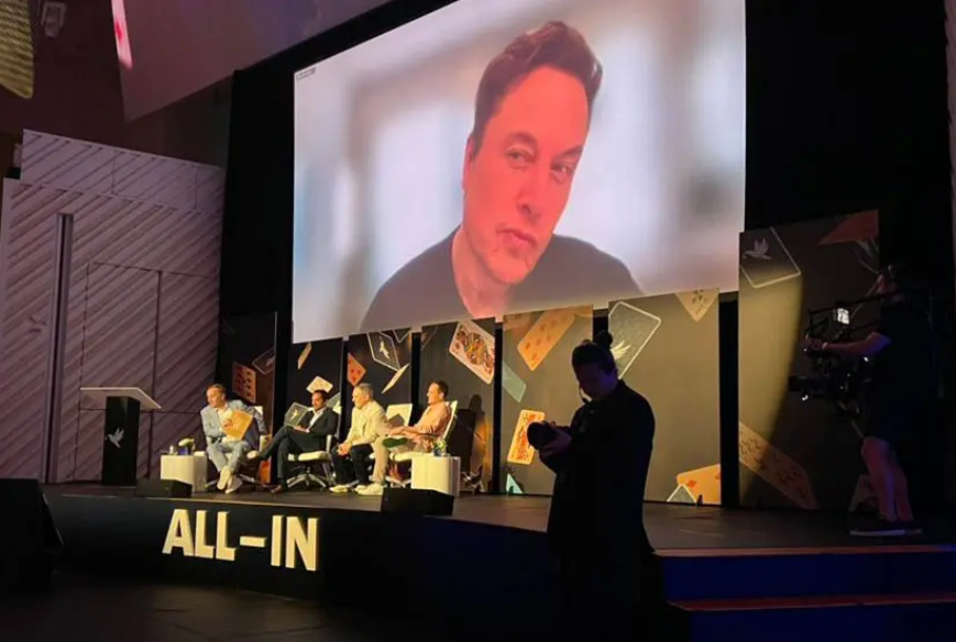 马斯克做客最近一期 All-In 播客线下活动录制 图片来源:Emmet Peppers / Twitter