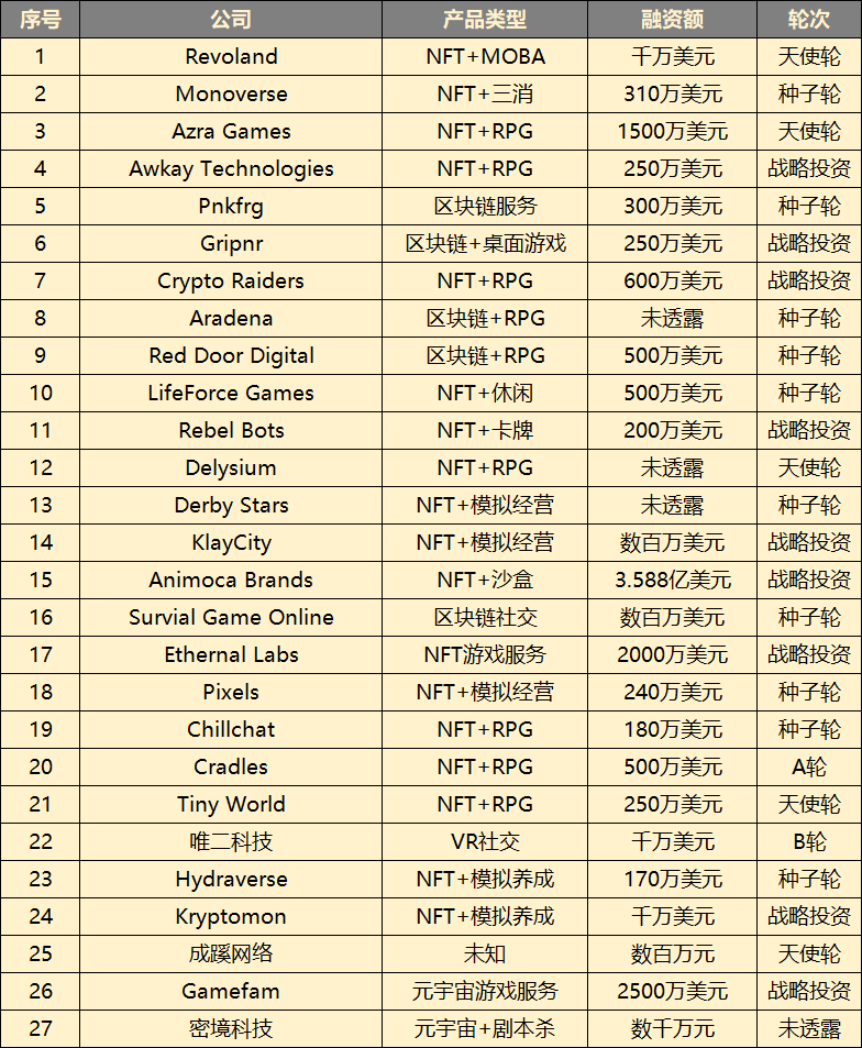 今年更是如日中天。截至今年五月底已经至少有72起元宇宙相关的投融资,其中游戏相关的有27个,占比升到了37.5%。