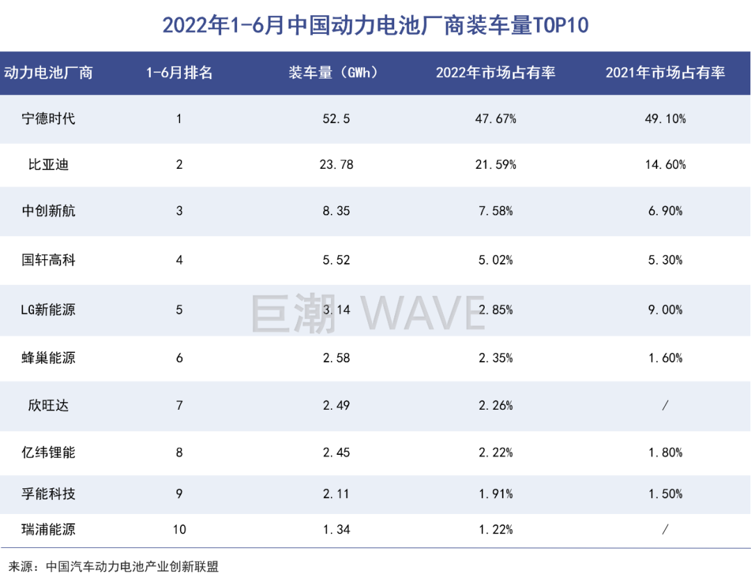 另一个可以提供佐证的事实是,LG新能源和松下在中国的市场份额已经被国产企业所分食,本土品牌获得绝对优势。根据最新数据,上半年国内装机量排名前十的动力电池厂商中,只有LG新能源一家外资企业,市占率为2.85%;而就在两年前,两家外资企业的市场份额还都在10%以上。