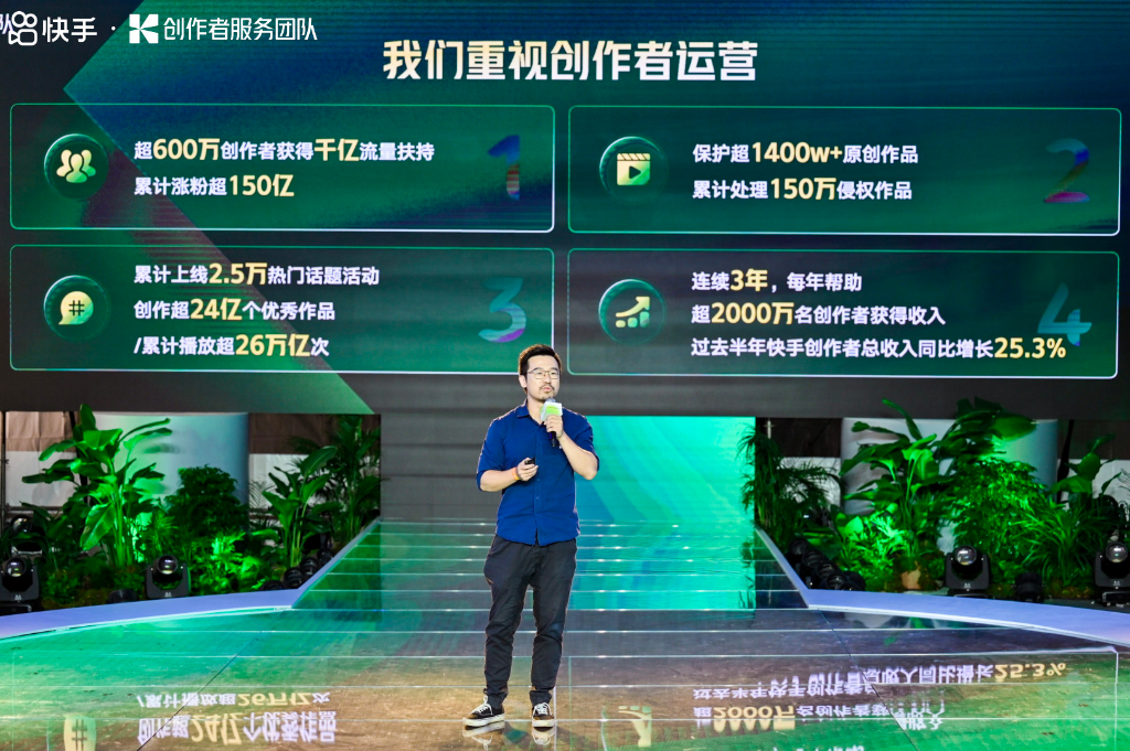官方数据显示,截至目前,超过600万创作者在快手获得千亿流量扶持,累计涨粉超150亿;快手累计上线2.5万热门话题活动,创作超24亿个优秀作品,累计播放超26万亿次;连续3年,快手每年帮助2000万名创作者获得收入,过去半年快手创作者总收入同比增长25.3%。