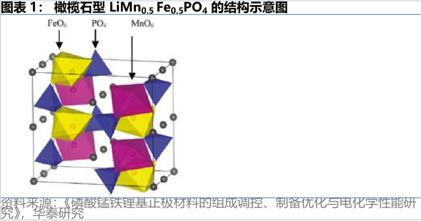 不同于三元材料的“层状结构”、中间有过渡金属来保证锂离子的脱嵌,LMFP和磷酸铁锂同样是橄榄石结构,锂离子在一维的脱嵌模式下获得更高稳定性。