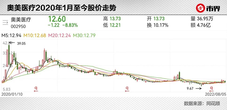 此番“毒胶水”事件,似乎并未对奥美医疗的股价造成太多冲击,截至8月5日收盘,奥美医疗跌2.1%,报12.6元/股,总市值79.8亿元。不过,若将时间线拉长,从2020年2月的39.05元/股算起,奥美医疗在两年半的时间里跌去67%。
