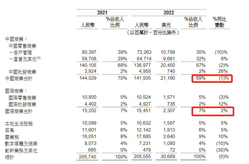 在阿里整个业务大盘中,最值得关注的还是基本盘:中国商业(中国零售商业和中国批发商业)。该电商板块的收入占据了阿里总营收将近七成,是绝对的收入发动机。