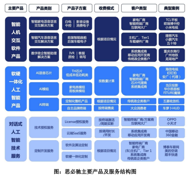 依托于 DUI 平台,思必驰主要有三大类产品形态:智能人机交互软件产品、软硬一体化人工智能产品与对话式人工智能技术服务。