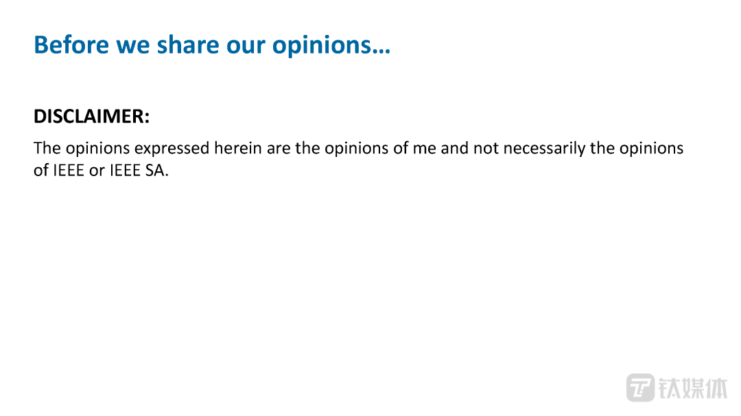 首先,我还是照例作一个声明,我今天讲的是我个人的观点,并不一定和IEEE或者IEEE标准协会的观点完全一致。