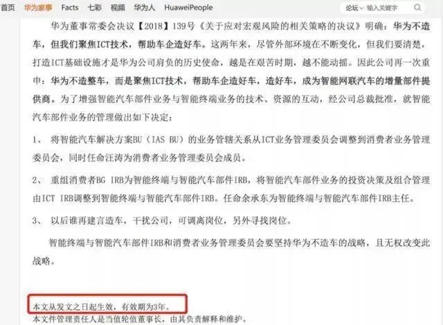 】、得,2020年底,华为内部那份《关于应对宏观风险的相关策略的决议》,其中提到该公司“绝不造车,而是要成为智能网联汽车的增量部件提供商”。