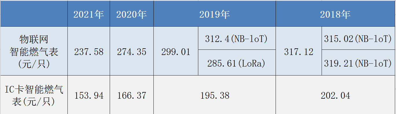 物联网智能燃气表、IC卡智能燃气表近年平均销售单价,数据:公司年报、招股书